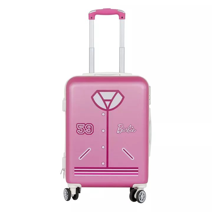 Ga op avontuur met de trendy roze Barbie Varsity cabinekoffer.