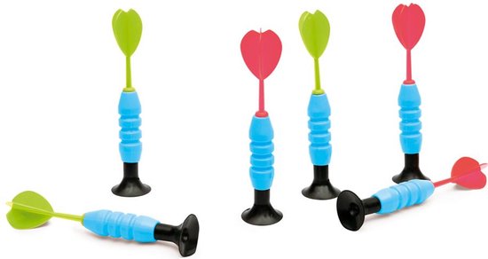 Dankzij het handige ophangsysteem kan dit spel overal gespeeld worden. De 6 rubberen pijlen met ultrasoepele zuignap zijn door hun grootte en vorm gemakkelijk te werpen, en bovendien zijn ze nog eens licht in gewicht.