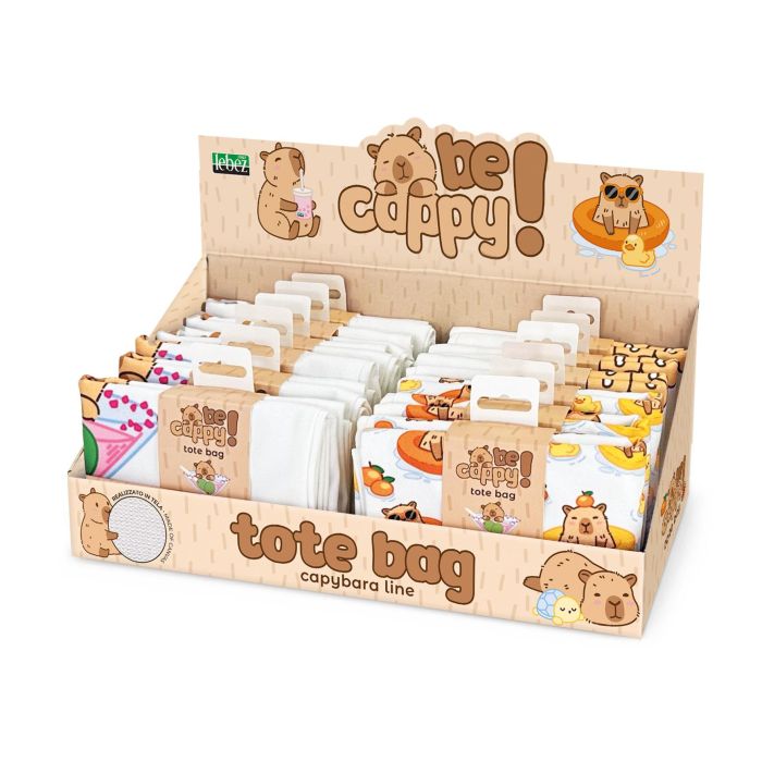 Linnen katoenen shoppers met vrolijke Capibara figuren.