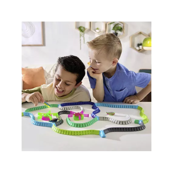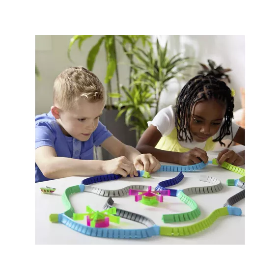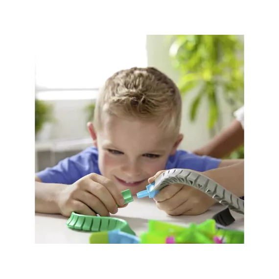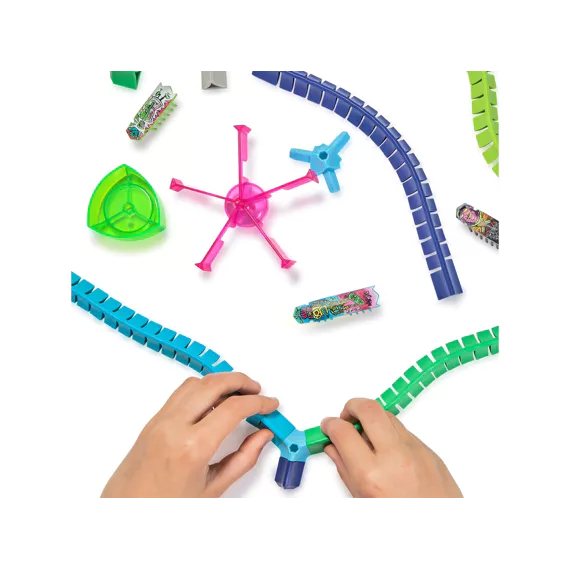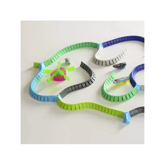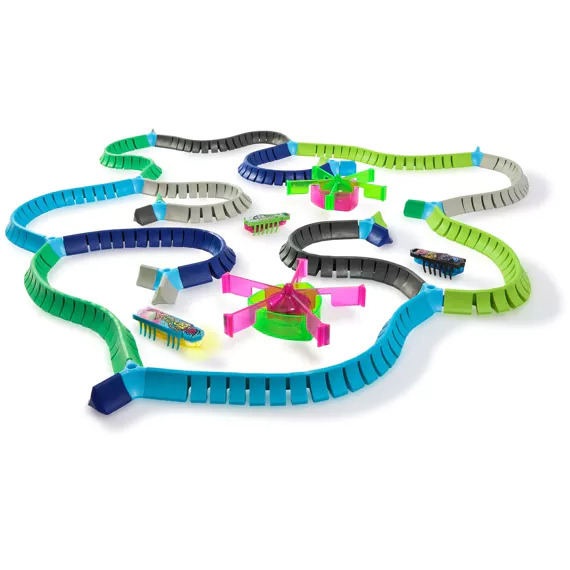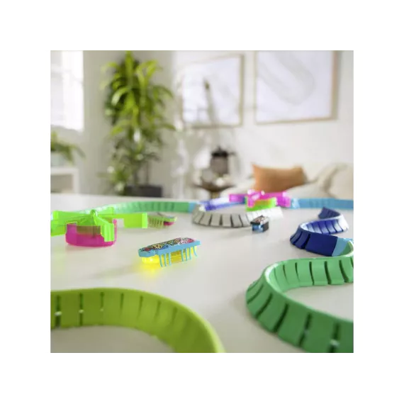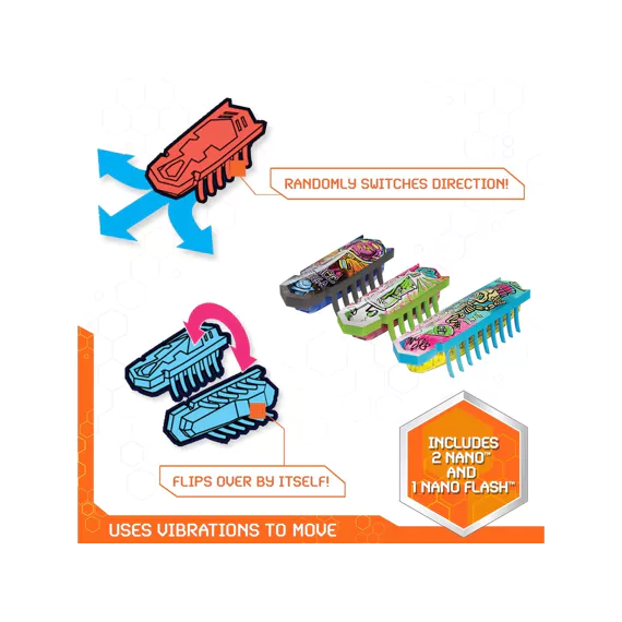 Ontdek de wereld van HEX BOTS Nano Land, waar vibratietechnologie zorgt voor eindeloos speelplezier! Laat de nano-bots tegen de flexibele muren stuiteren en kleine hoekjes verkennen alsof ze echte insecten zijn. Deze mix-and-match bouwset bevat de snelste Nano tot nu toe: Flash Nano, plus 2 extra nano’s, flexibele jelly-muren, 2 draaimolen-lusstukken en kleurrijke street art-decoraties. Kinderen kunnen hun eigen fantasierijke racebanen, speeltuinen en obstakels creëren.