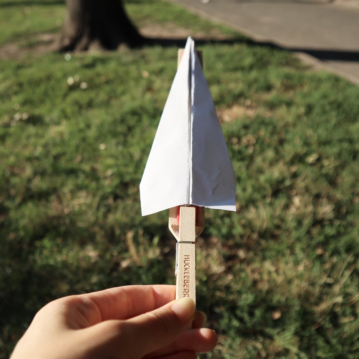 Gebruik deze FSC berkenhouten papieren vliegtuigwerper om je papieren vliegtuigje sneller en verder te laten vliegen.