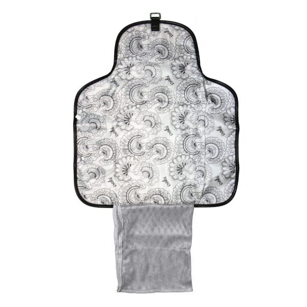 De grote, afveegbare, gewatteerde mat houdt de baby schoon en comfortabel terwijl jij de luiers verschoont. Ingebouwde opbergvakken en doekjeshouder houden al je benodigdheden voor het verschonen van luiers op hun plaats en zijn supergemakkelijk toegankelijk. Handig op te vouwen tot een nette clutch, die in je luiertas kan worden opgeborgen of onder je kinderwagen kan worden opgeborgen.