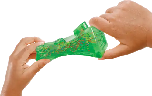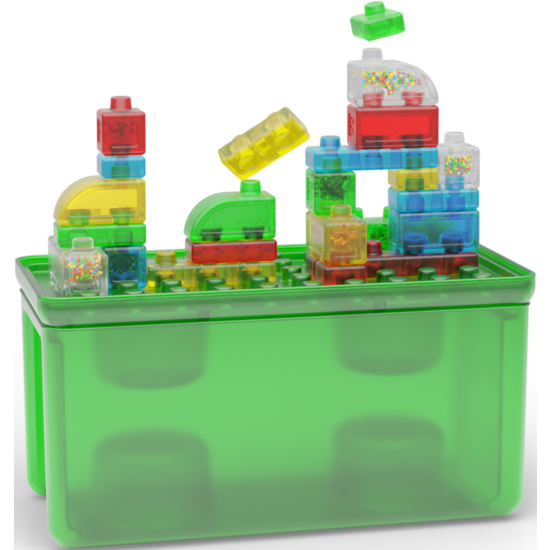 Met de blokken van de Jelly Blox 2-in-1 Storage Box kunnen kinderen niet alleen bouwen, maar ook kunnen ze er in knijpen en platdrukken.