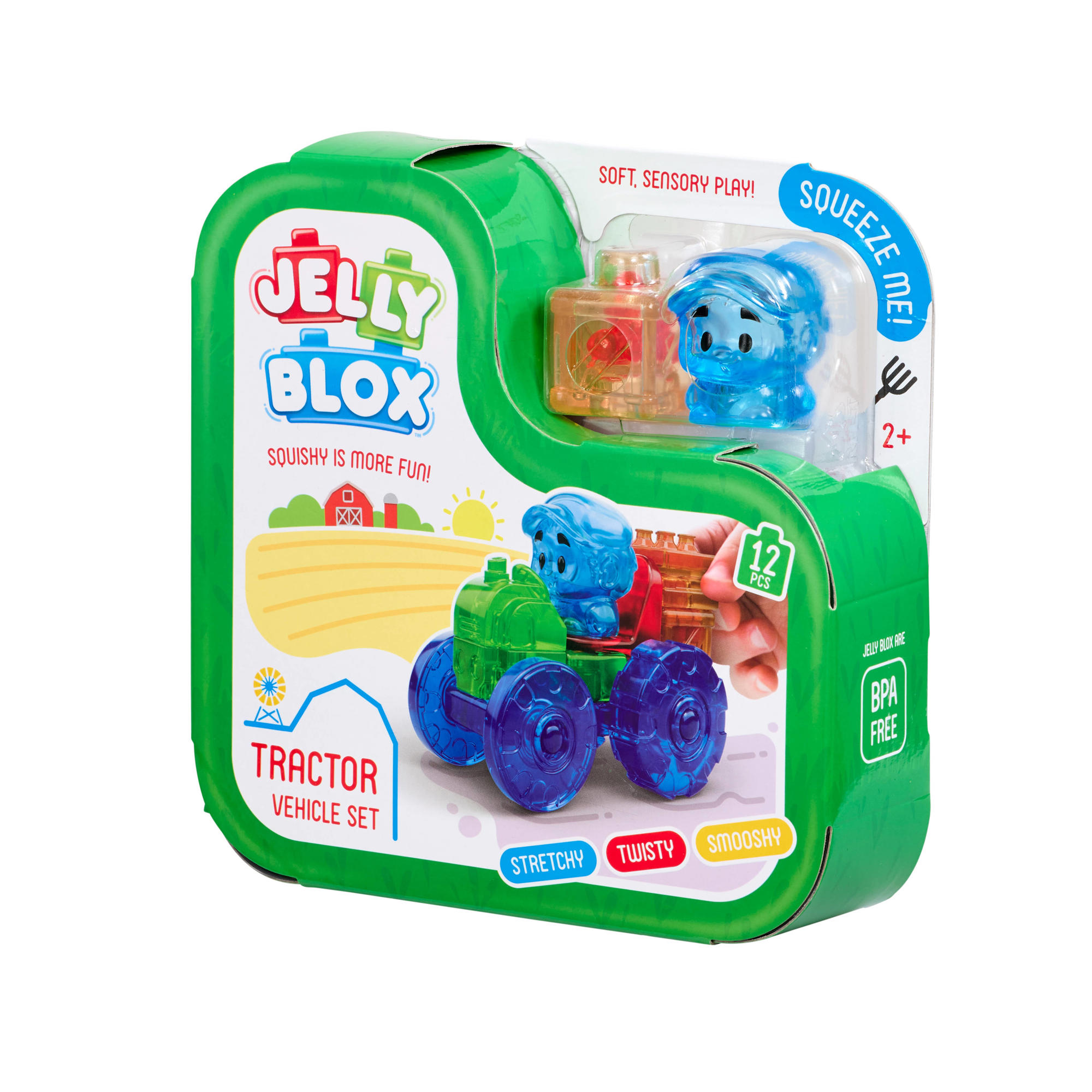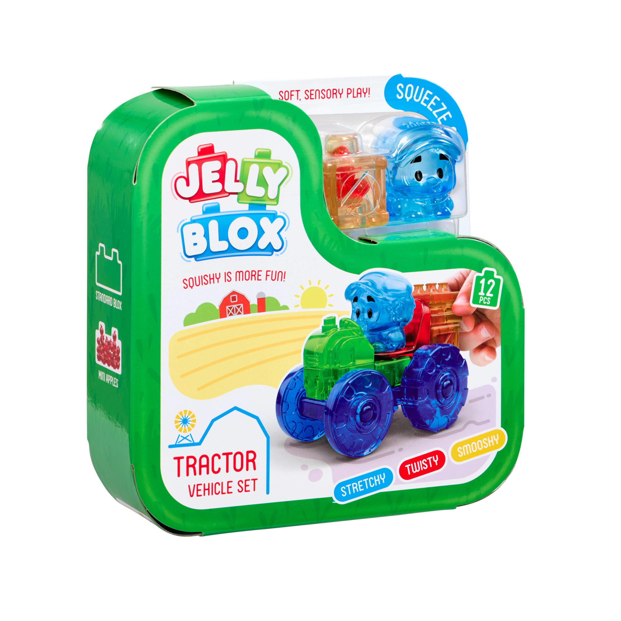 Laat de verbeelding van kinderen tot leven komen met Jelly Blox Tractor Vehicle Kit! Met de Jelly Blox Tractor Vehicle Kit kunnen kinderen niet alleen bouwen, maar ook kunnen ze er in knijpen en zelfs platdrukken. Sommige blokken zijn gevuld met materialen zoals zand, blokjes of schuimballetjes die de zintuigen stimuleren en de sensorische tactiliteit bevorderen. Met deze set kan je een mooie wagen bouwen.