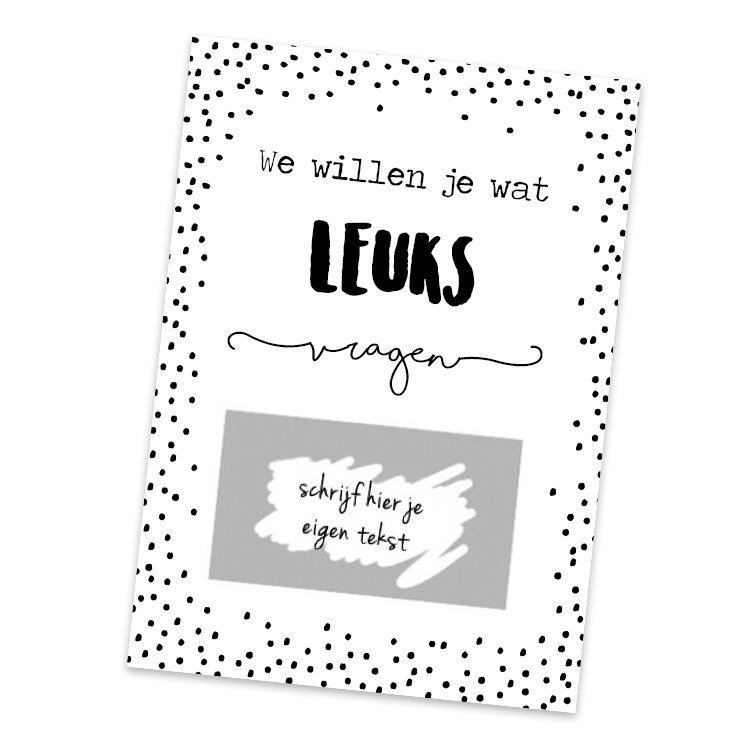 Schrijf de tekst in het kader, plak de bijgeleverde sticker eroverheen en laat de ontvanger krassen, hoe leuk?!