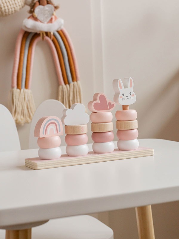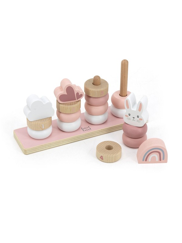Deze vier stapeltorens op een massieve basis zijn gemaakt van hoogwaardige FSC-gecertificeerde houten en hebben zachte Label Label-kleuring met kindvriendelijke waterbasisverf.
