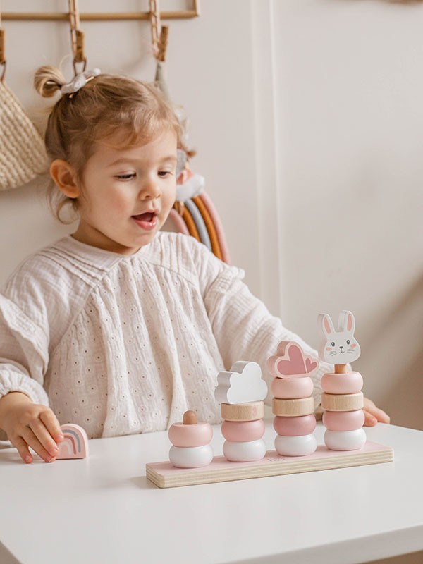 Terwijl je kind zorgeloos speelt, biedt dit kleine stapelspel een geweldige educatieve meerwaarde. Het stimuleert verbeelding en creativiteit; je kind leert kleuren te ordenen, te tellen en de eerste cijfers te leren. Geen tijd te verliezen… Begin met deze schattige Label Label stapelringen!