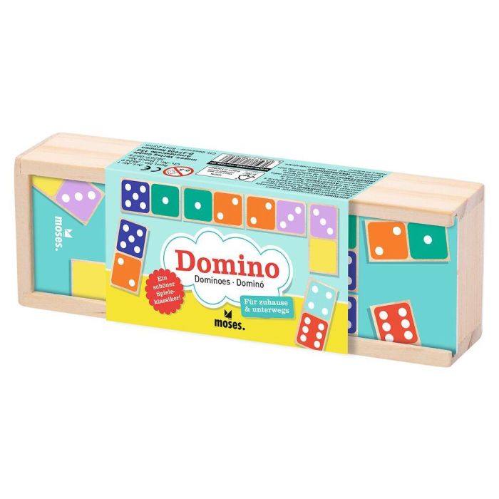 Dominospel in houten uitvoering, compact, ideaal voor op reis of onderweg.