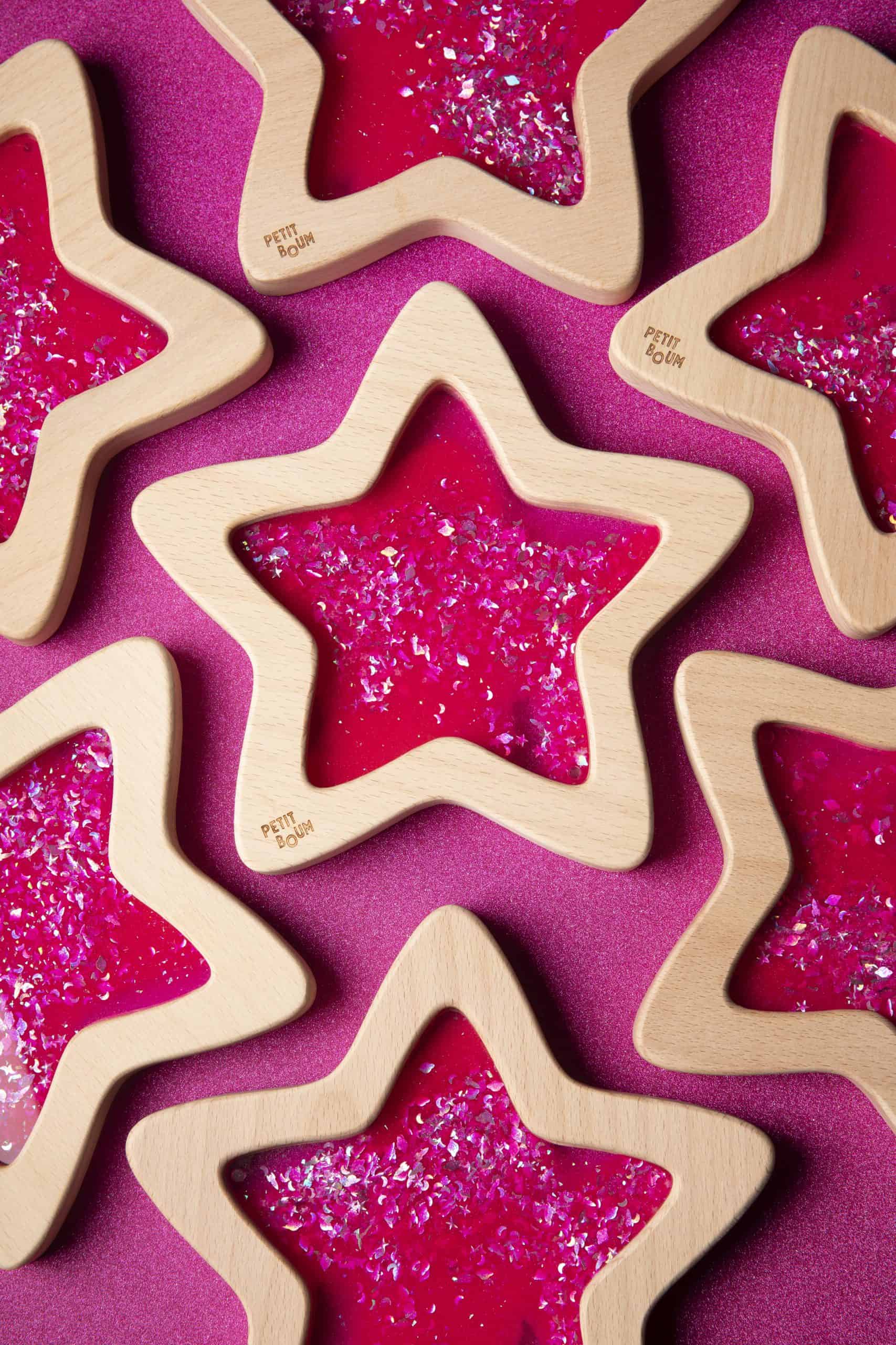 We gaan nog een stapje verder met ons klassieke Float Bottles-concept met deze sensorische ster in levendige roze tinten, die de oogbewegingsoefening van de kleintjes stimuleert en een staat van kalmte en concentratie bevordert.