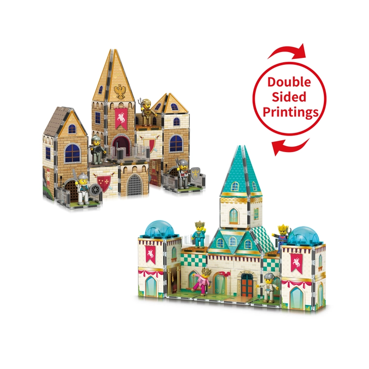 Met dubbelzijdige prints kunnen kinderen majestueuze kastelen bouwen of zich verliezen in de allure van een middeleeuws kasteel.