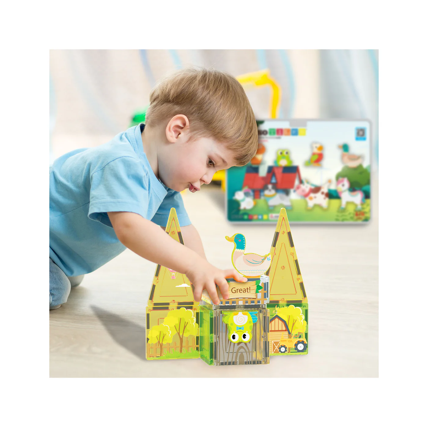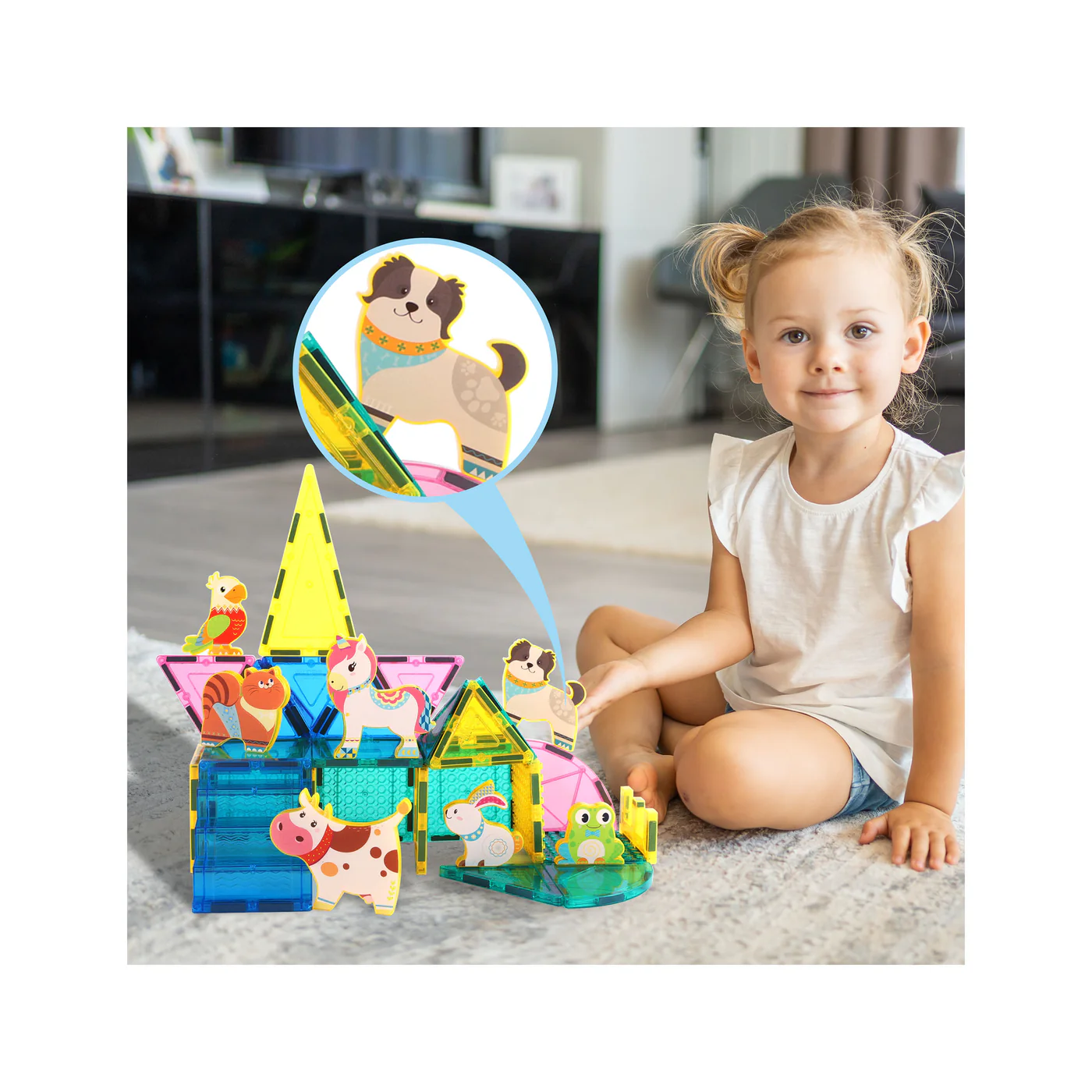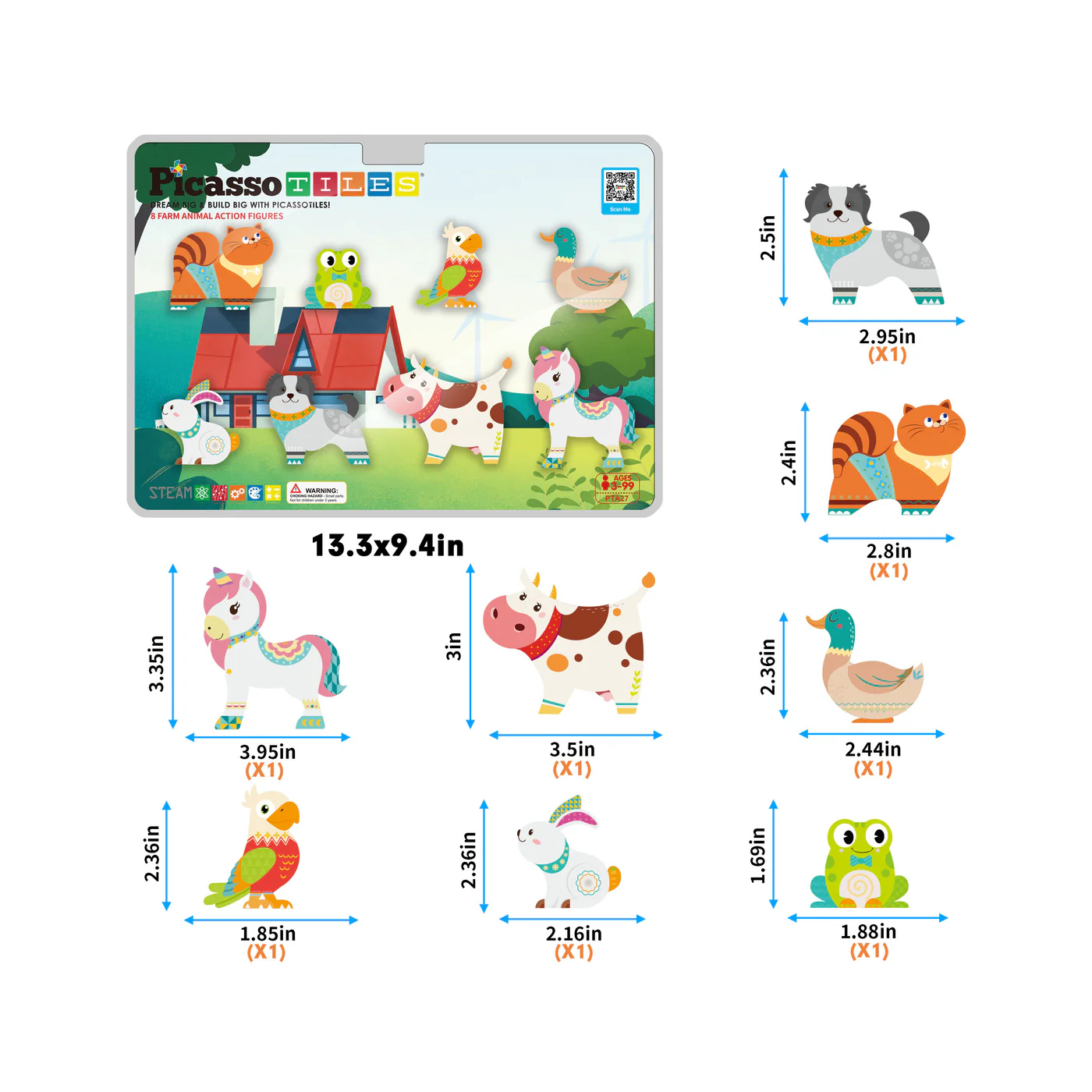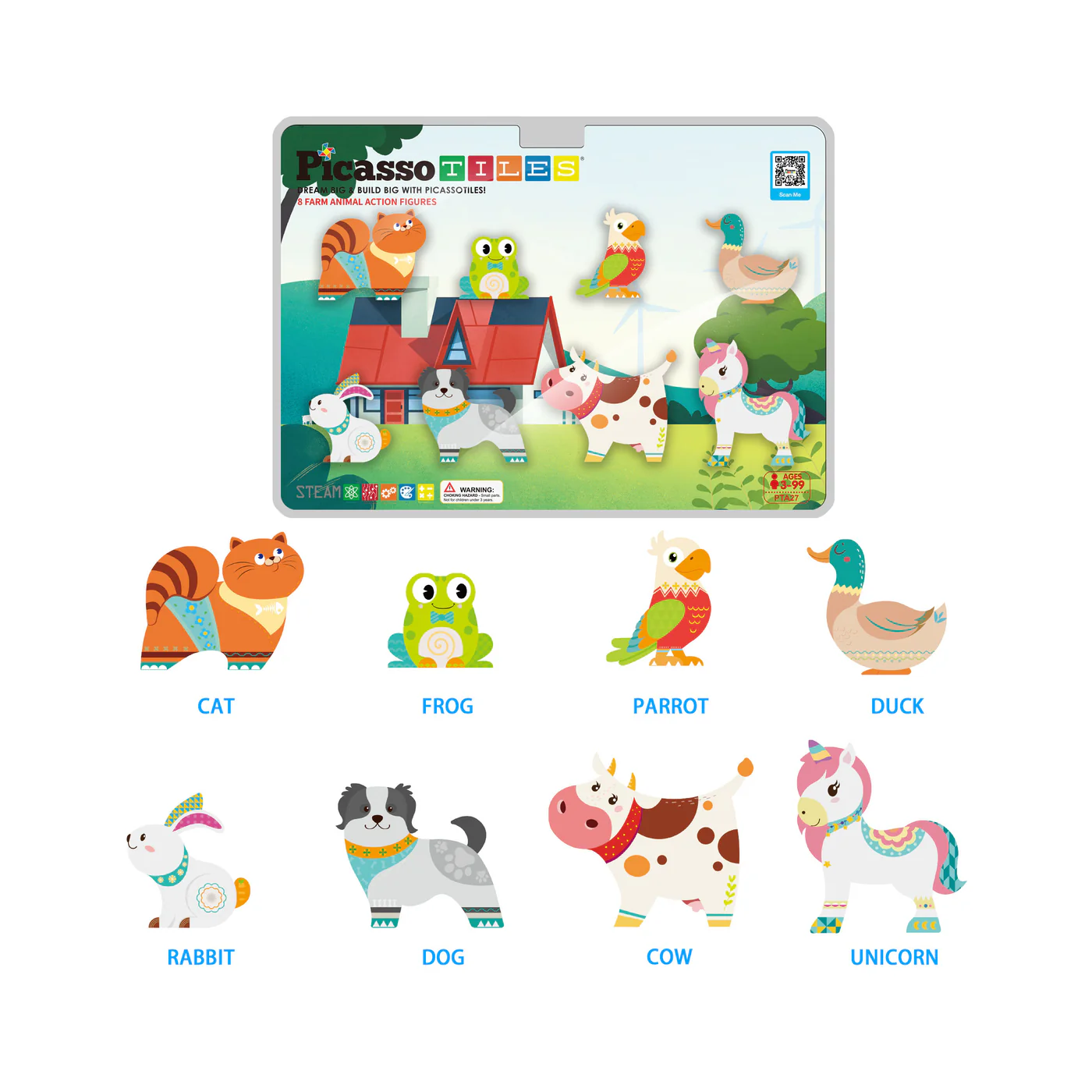 PicassoTiles 8-delige magneettegels, 8 magnetische actiefiguren van boerderijdieren.