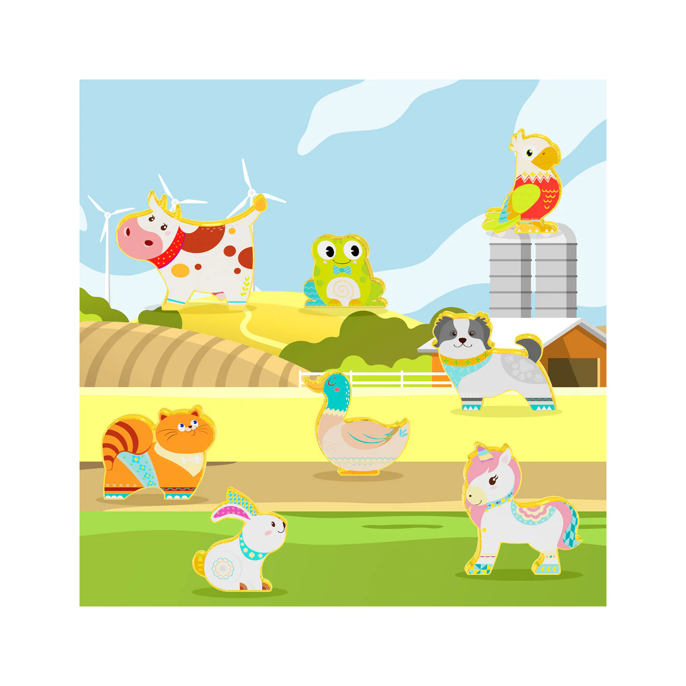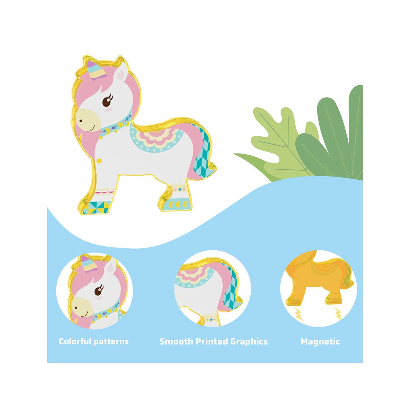 Laat eindeloze creativiteit de vrije loop met deze 8-delige gemagnetiseerde speelset, kat, kikker, papegaai, eend, konijn, hond, koe en een eenhoorn.