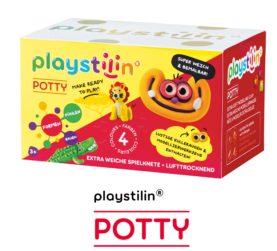 Playstilin Potty is de extra zachte boetseerklei voor bijzonder tactiel boetseerplezier! Gewoon kneden, persen, rollen, uitsnijden en vormen! Omdat Playstilin® Potty aan de lucht droogt, is het ideaal om mee te knutselen en te creëren! De afgewerkte gedroogde kunstwerken kunnen vervolgens kleurrijk worden gedecoreerd en fantasierijk worden ontworpen met Playstilin® Loamy vingerverf! Om te bewaren of als zelfgemaakt cadeau gemaakt van klei!
