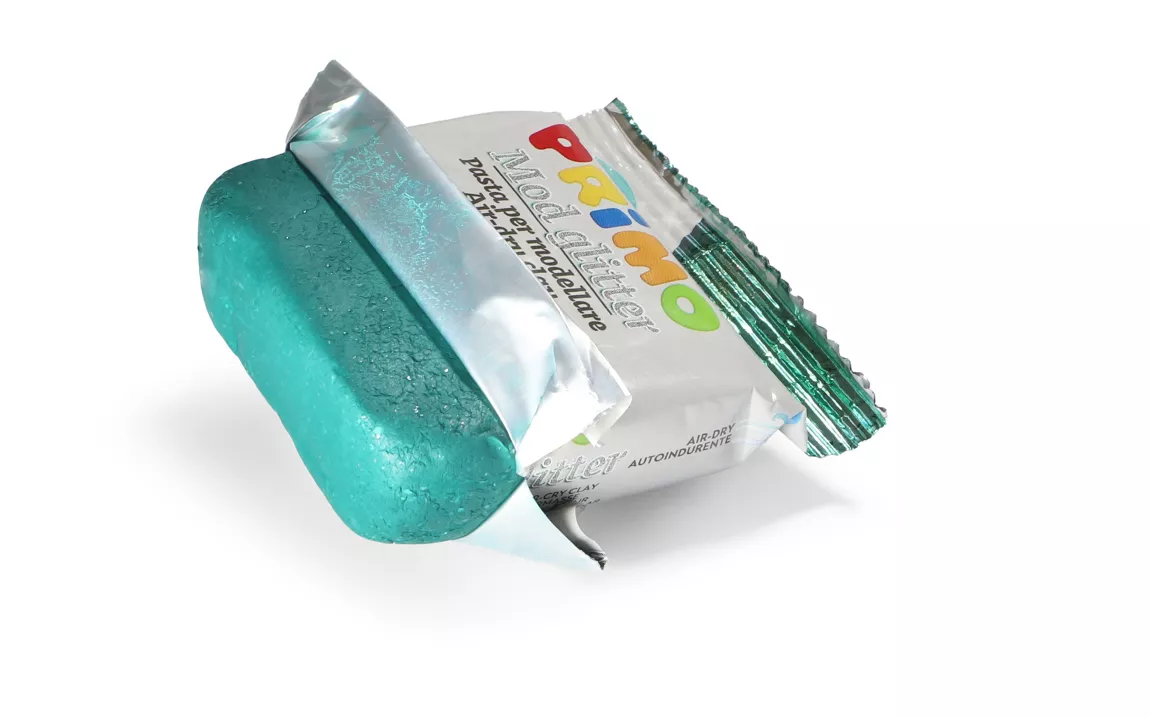 Boetseerklei met natuurlijke glitter, door de aanwezigheid van deze glitter krijgt de klei een ietwat ruwe textuur.
