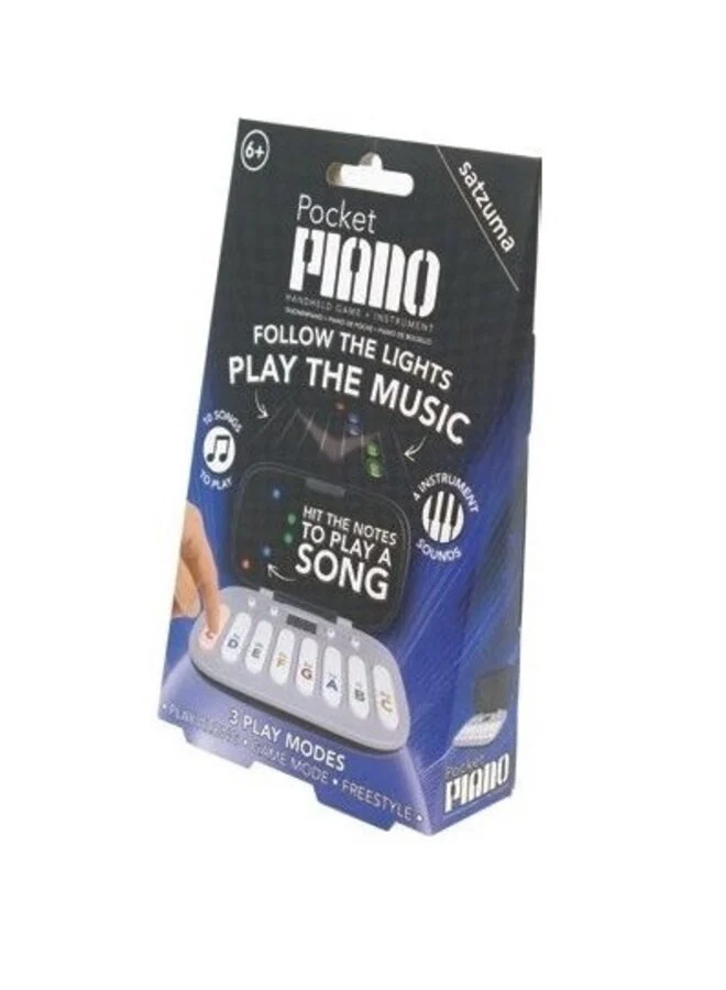 Maak kennis met de Satzuma Pocket Piano: een compact en draagbaar instrument dat muzikale creativiteit overal toegankelijk maakt. Dit innovatieve pocketformaat keyboard is speciaal ontworpen voor jonge muzikanten die ook onderweg willen componeren en spelen. Volg gewoon de lampjes op het scherm en druk op de bijbehorende toetsen.