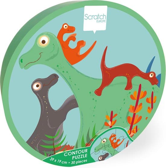 Leg de stukjes van de puzzel in elkaar en ontdek de speelse dinosaurussen met hun moeder.