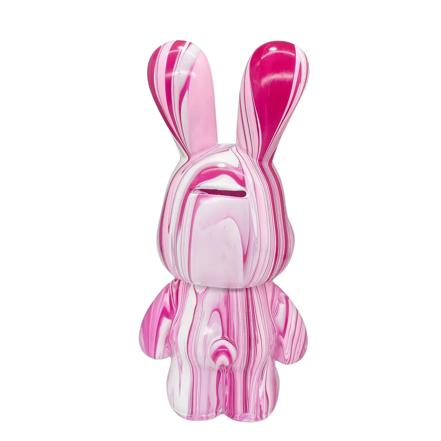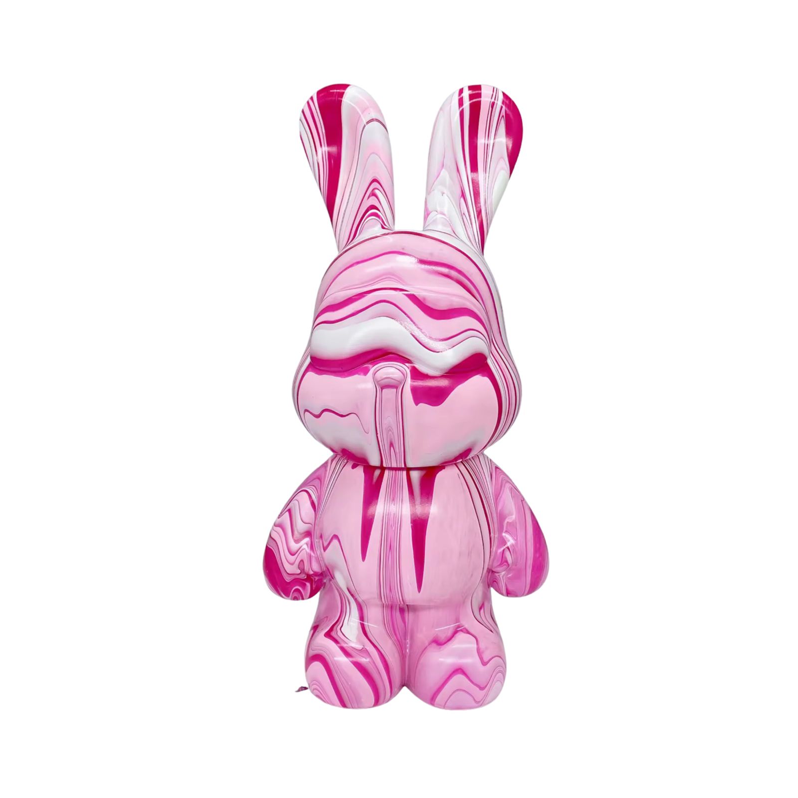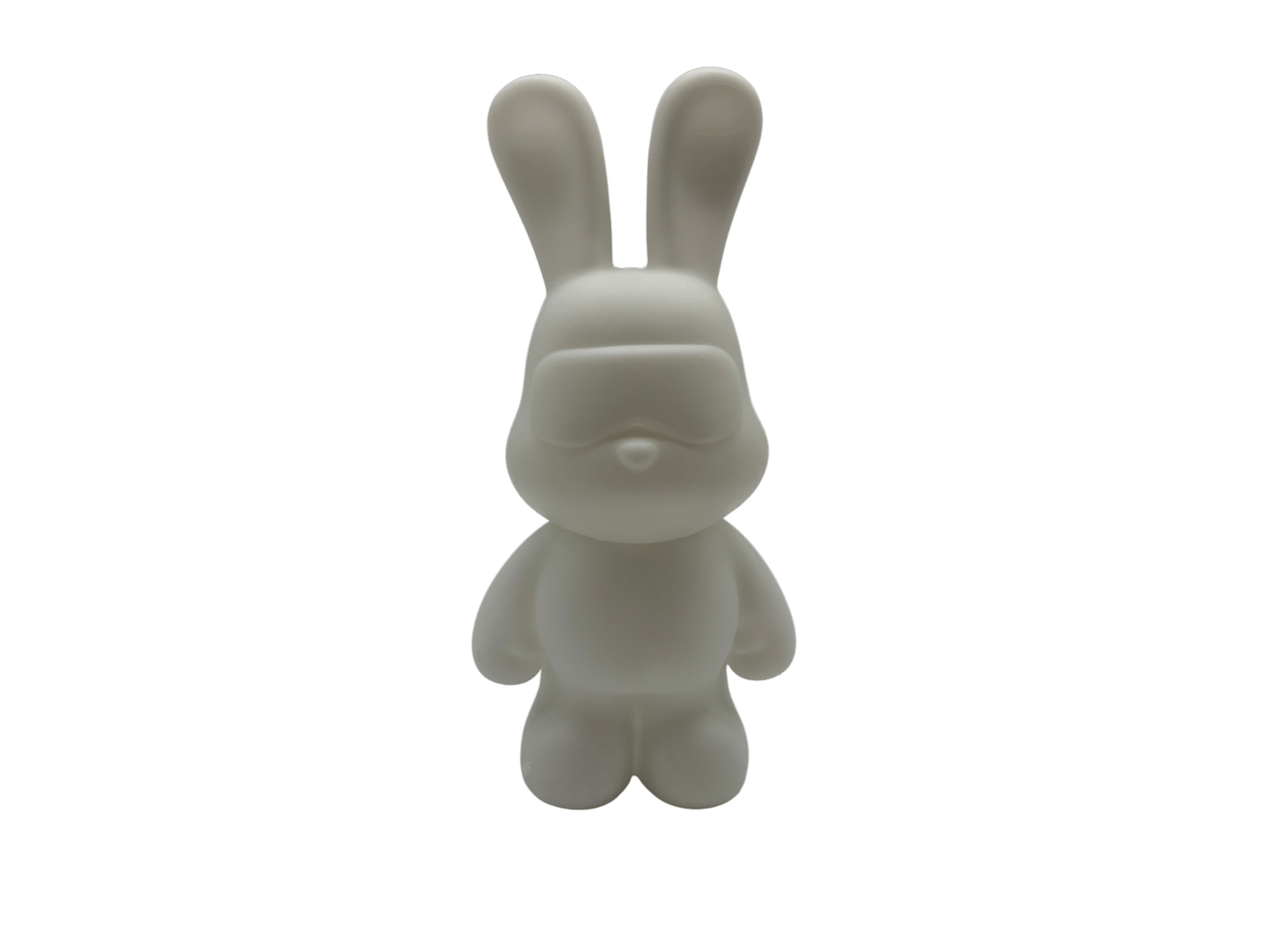 In de doos: Rabbit Fluid Bear (23 cm), 3 verschillende kleuren verf, palet, beker, handschoenen, penseel, lepel, tafelkleed en schort.