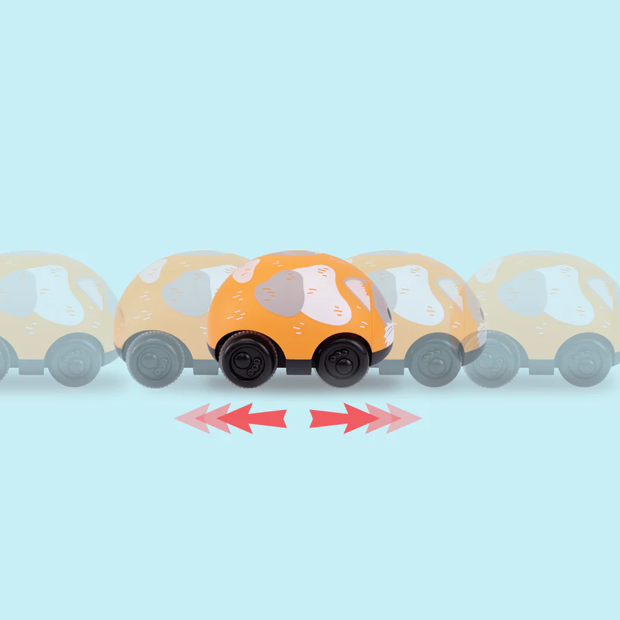 De kleintjes hoeven de dieren alleen maar te duwen en te trekken, los te laten en te kijken hoe ze over de vloer zoefen.