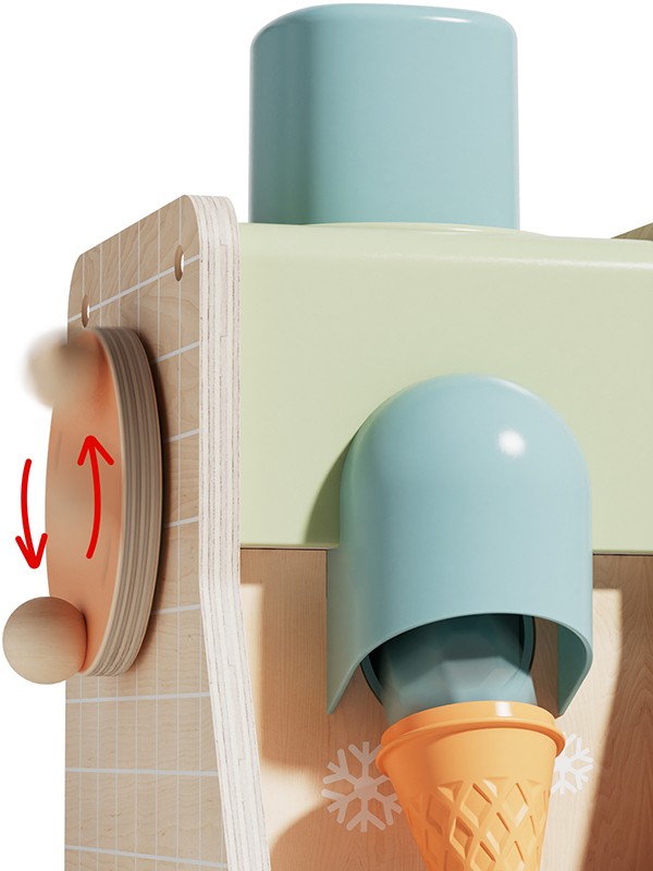De schep tilt gemakkelijk scheppen op, zodat kinderen hun creaties kunnen serveren als een echte ijssalon.