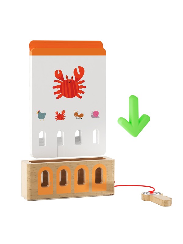 Tijdens het spelen controleren kinderen zelf hun antwoorden: de sleutel wordt in het gat van de doos gestoken in overeenstemming met de vermoedelijke oplossing – en alleen met het juiste antwoord kan de kaart worden verwijderd.