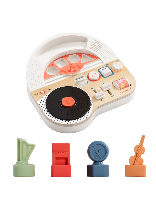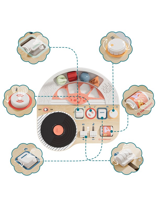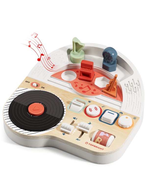 Dit muzikale busy board voor peuters combineert hands-on spel met geluidsontdekking via 14 interactieve zintuiglijke activiteiten en 4 instrumentenblokken. Stem de vormen aan om instrumenttonen te triggeren en stapel stukken om geluidstracks te layeren voor creatief spel. Kleine handjes kunnen trekken, drukken, draaien, draaien, pluggen en schuiven om coördinatie en vingerkracht op te bouwen.