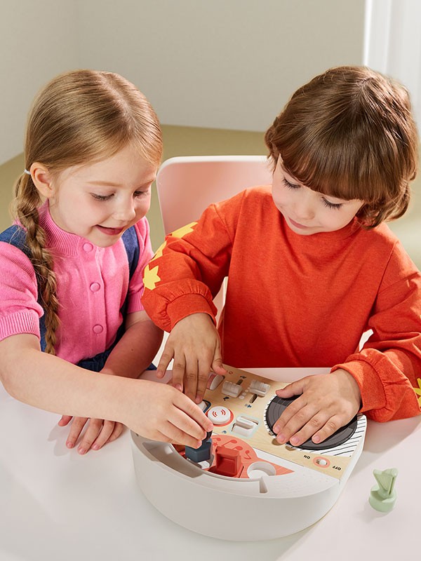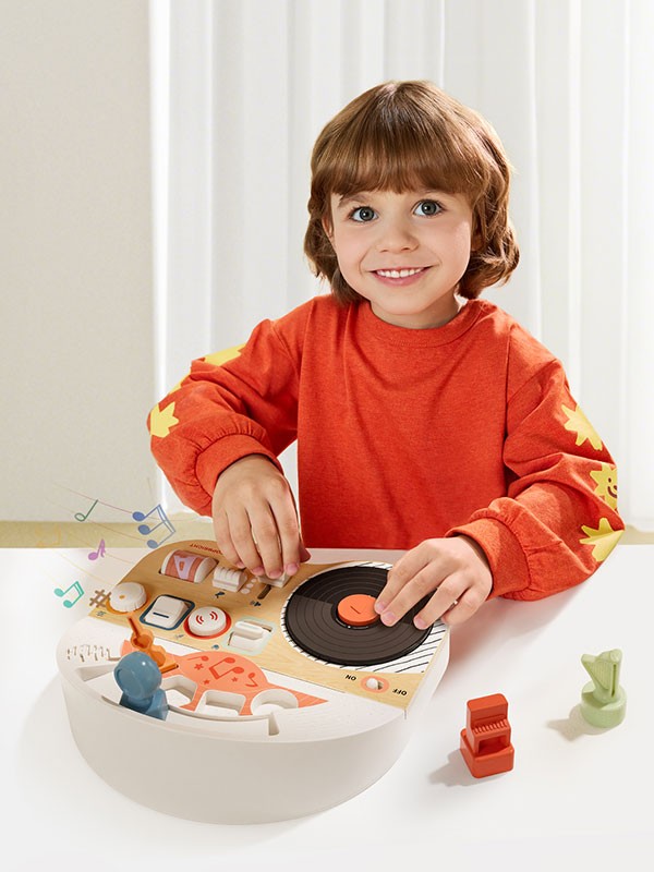Peuters kunnen hands-on bedieningselementen verkennen, instrumentstukken matchen en geluiden in lagen combineren om hun eigen kleine concert te creëren terwijl ze fijne motoriek en focus oefenen.