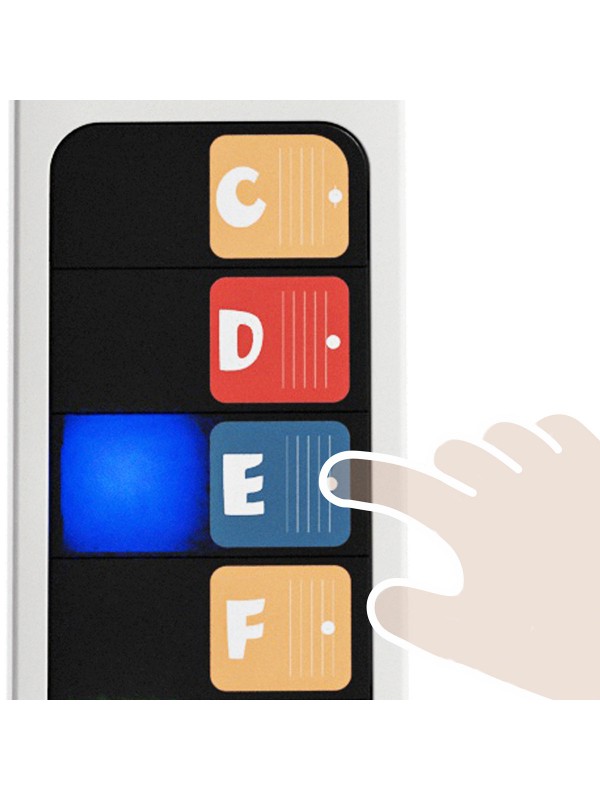 Zeven lichtgevende knoppen introduceren vroege notenspel en ondersteunen visueel leren met heldere, gemakkelijk te volgen aanwijzingen.